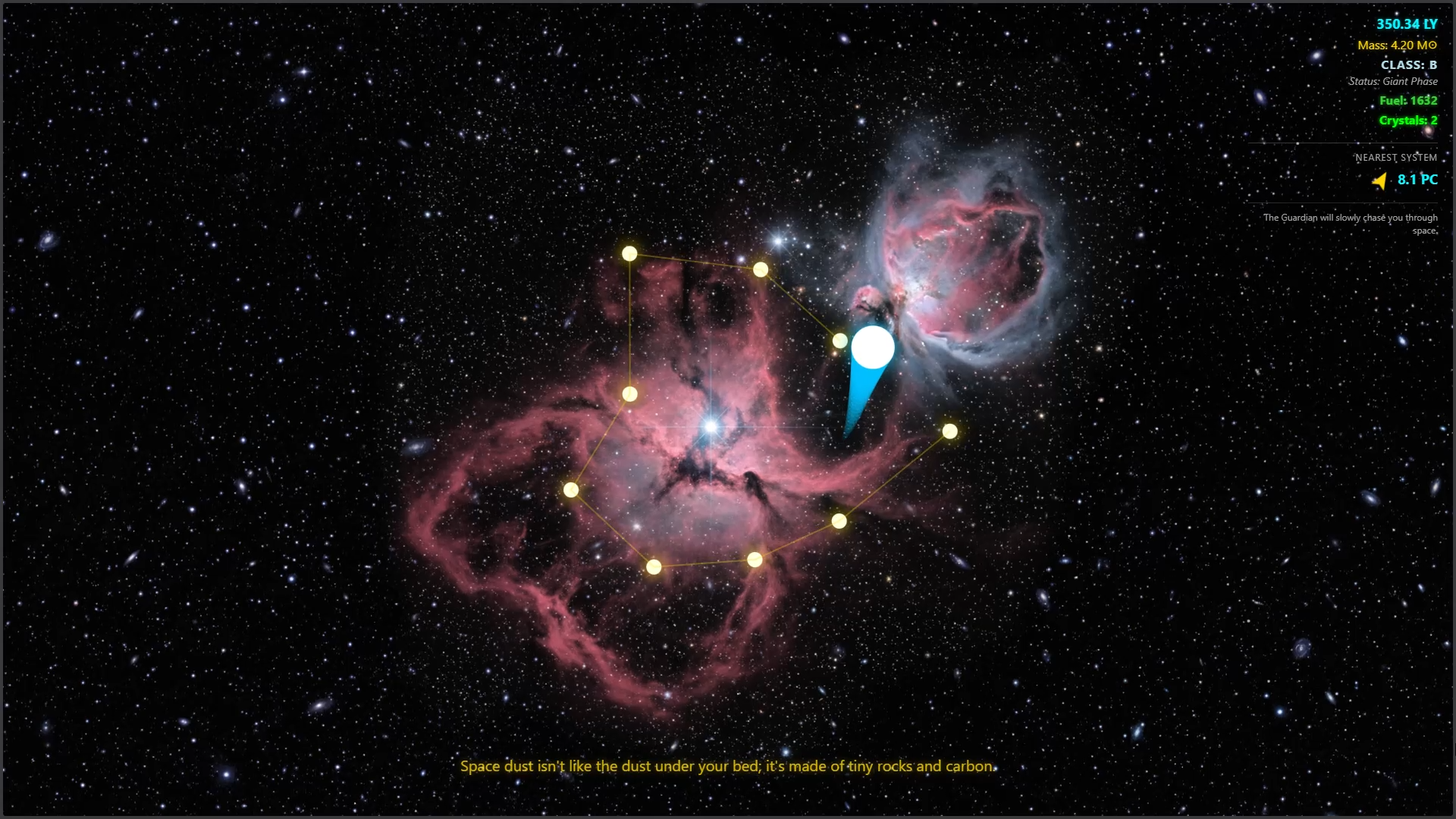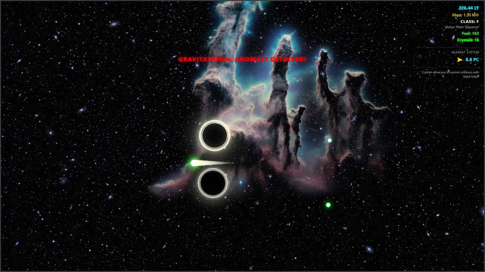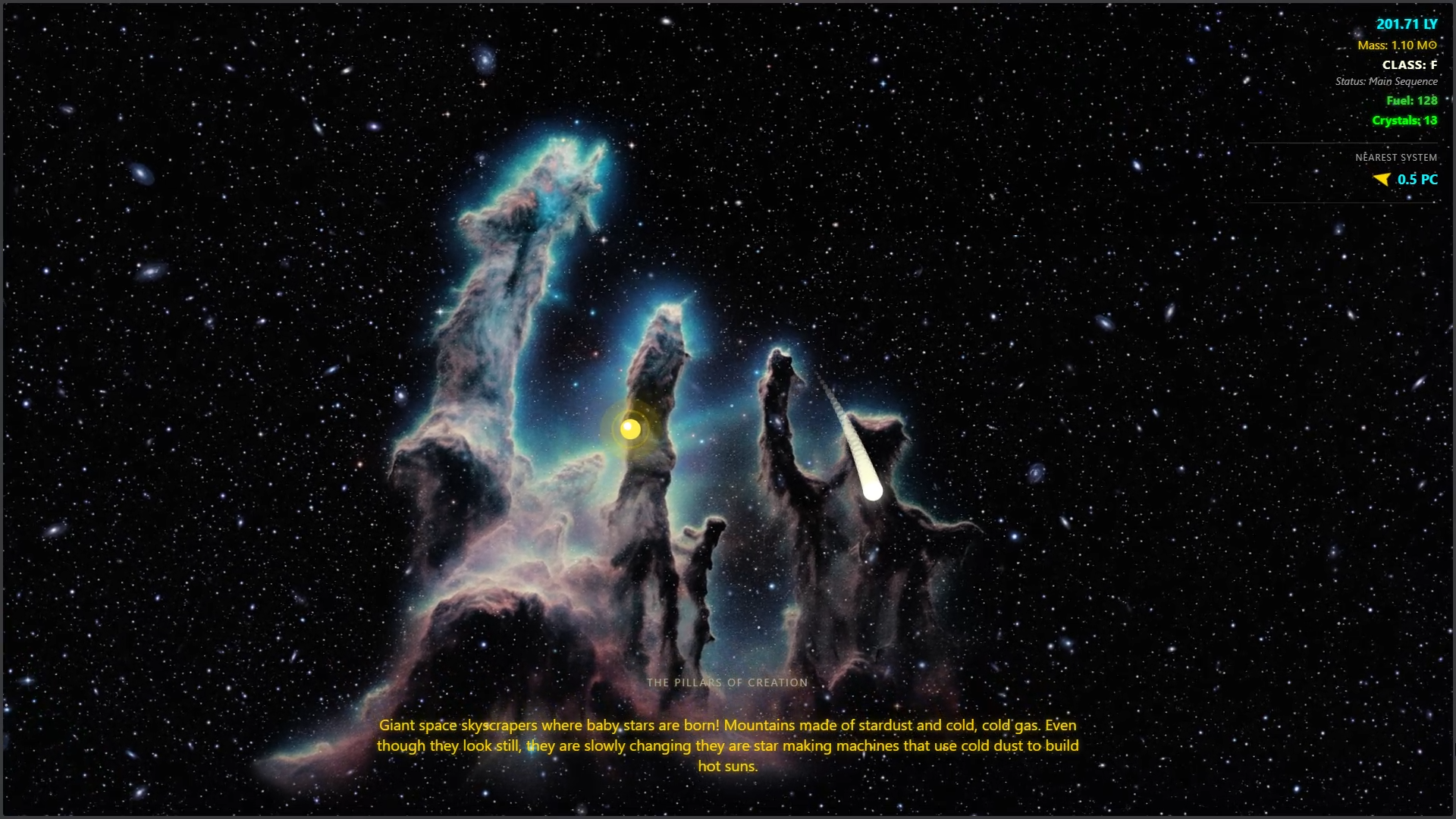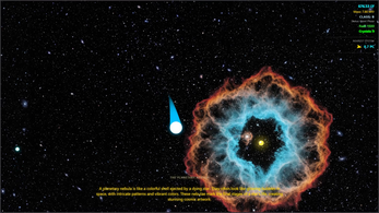 Educational game on the journey and evolution of a star dust into a successful star. During the evolution the star goes through various evolutionary pathways witnessing the celestial events and running away from chasing blackholes, travelling light years across light years trapped in time loop, while listening to the real music of the stars.
